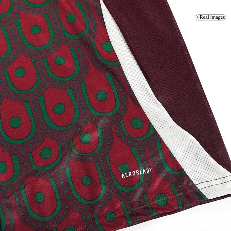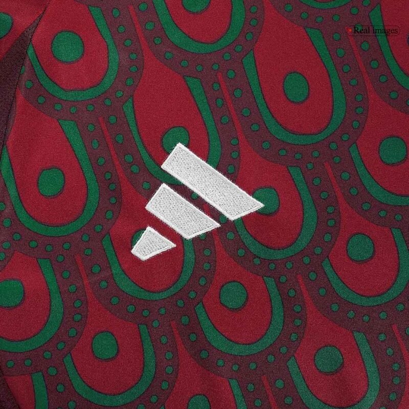 Description about the Mexico jersey: The Mexico home kit Copa America 2024 boasts a peacock-inspired pattern, creating a one-of-a-kind look. The peacock design pays homage to the Mexican myth of the peacock. An all-over pattern of peacock feathers creates a unique look for the Mexico jersey. Besides, the new Mexico jersey 2024 Copa America combines a maroon base with grey for logos.