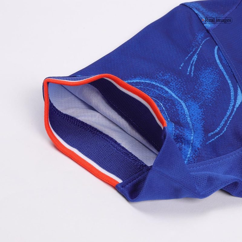 Description about the?Chelsea?jersey: The Chelsea FCjersey2024-2025 home blends the classic blue and white hues with a splash of vibrant orange. The emblem and logos on this season’s Chelsea home shirt sport a light blue color palette. Intriguingly, subtle orange details accentuate the club crest and brand logo, complemented by white and orange stripes adorning the sleeve borders. Notably, the standout feature of the design is an intricate pattern reminiscent of undulating ocean waves, adding a dynamic and visually captivating element to the overall look of theChelseajersey.
