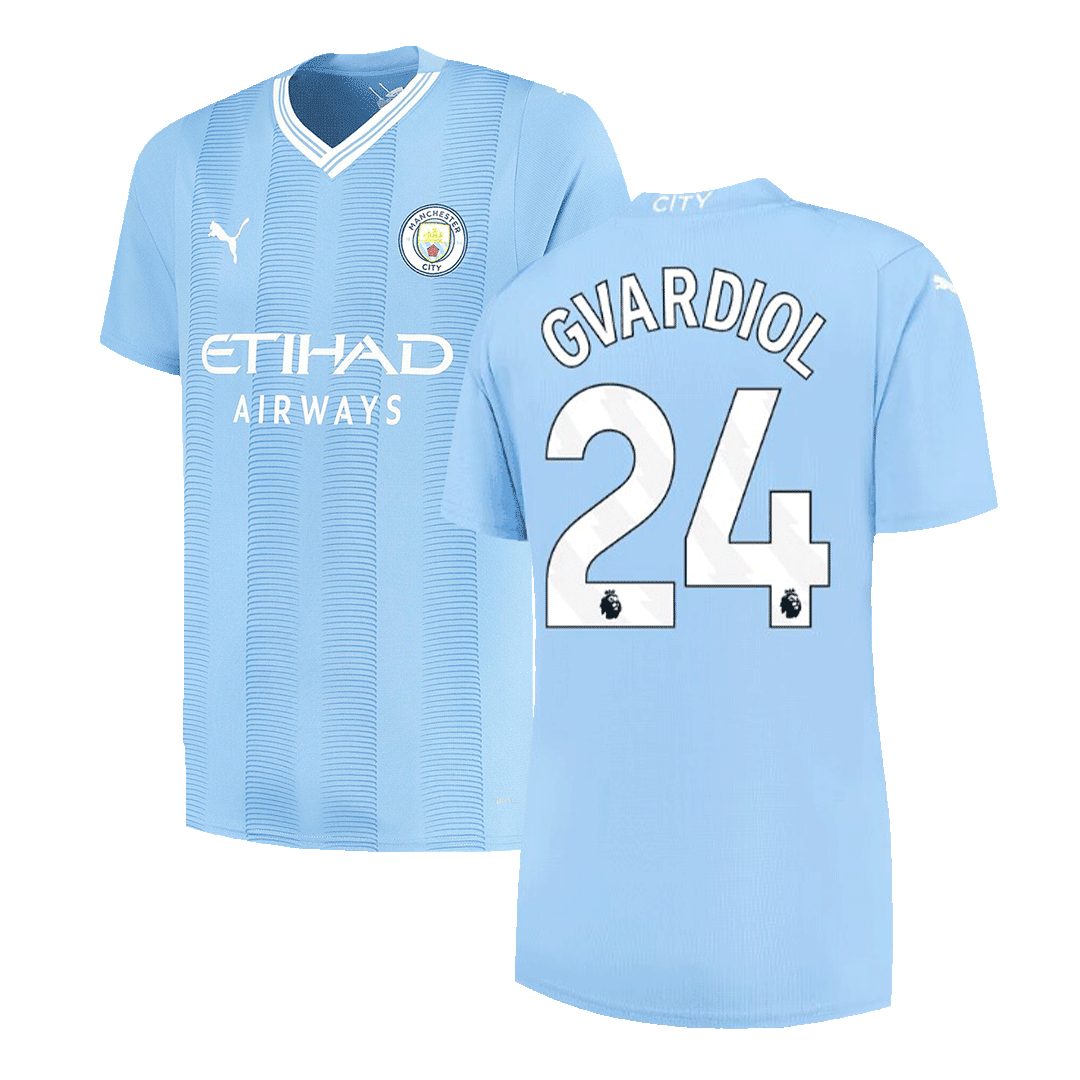 Introducing the new and improved Manchester City home jersey, featuring upgraded breathable materials for enhanced comfort and performance on the pitch, close to the original version.