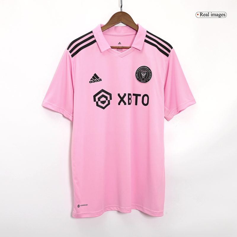 Introducing the new and improved Inter Miami CF home jersey, featuring upgraded breathable materials for enhanced comfort and performance on the pitch, close to the original version.