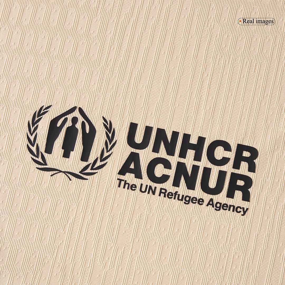 The 25/26 Barcelona jersey features a light yellow-gold base with bold black and Persian violet accents. Its collar and cuffs are directly inspired by the iconic NBA Lakers style, making this kit a unique crossover between football and basketball culture. On the chest, the Barcelona football jersey crest carries a subtle snake-skin pattern, symbolizing Kobe’s legendary “Mamba Mentality.”